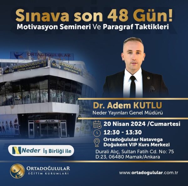 Neder Yayınları Genel Müdürü Sayın Dr. Adem Kutlu ile gerçekleştirdiğimiz ‘’Nitelikli Gelecek Semineri’’ velilerimiz tarafından yoğun ilgiyle karşılandı. Bu değerli etkinlikte, kaliteli eğitim ve gelecek perspektifleri üzerine önemli konular ele alındı ve çocuklarının geleceği için kaygılı ebeveynlere rehberlik hizmeti niteliğinde bilgiler paylaşıldı. Bu verimli seminer için Sayın Adem Kutlu’ya ve yoğun katılımı için sevgili velilerimize…